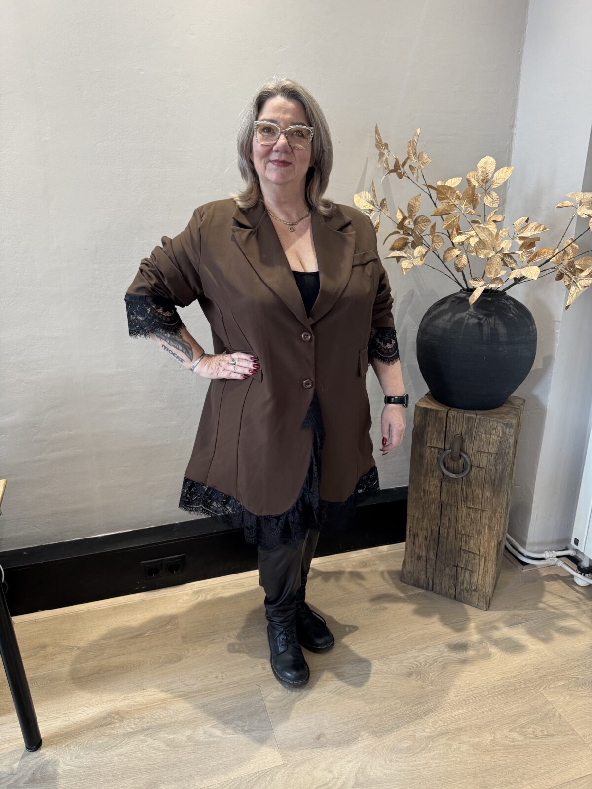 Model heeft maat 46 maar deze mooie blazer te dragen vanaf maat 50