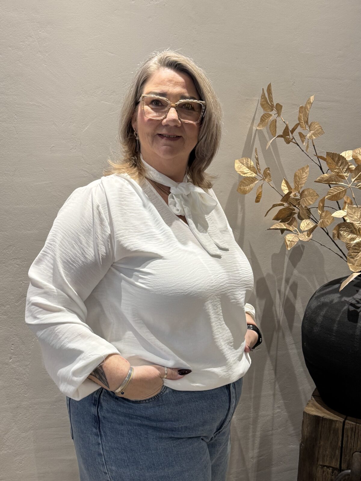 Elegante blouse met dessicore strik. Perfect voor zakelijk of casual te dragen.
