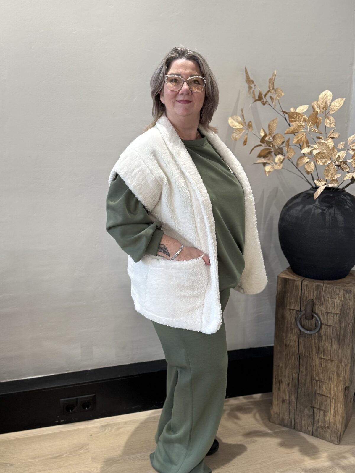 Dit prachtige teddy gilet is de perfecte toevoeging aan je wintergarderobe.